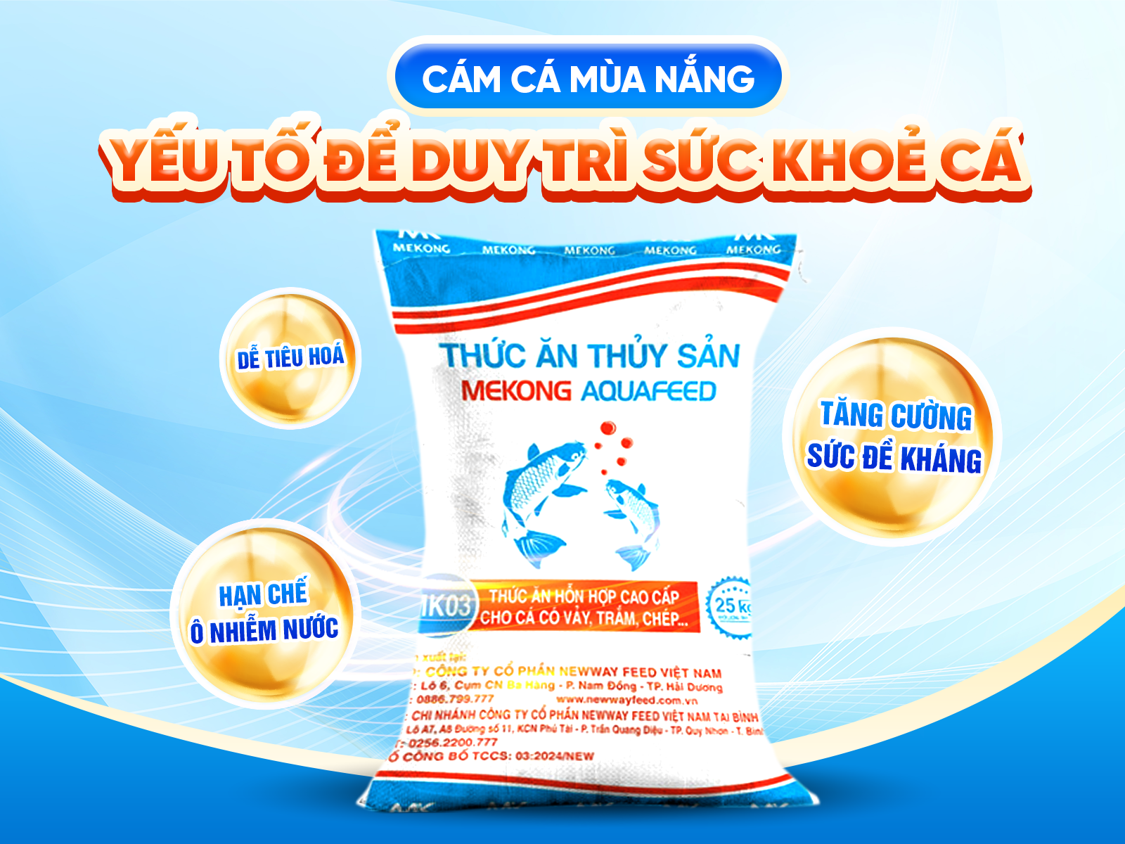 Với kinh nghiệm hơn 10 năm trong sản xuất thức ăn thủy sản, NEWWAY FEED đã nghiên cứu và phát triển dòng sản phẩm Mekong Aquafeed – Cám cá mùa nắng, đáp ứng đầy đủ các tiêu chí: